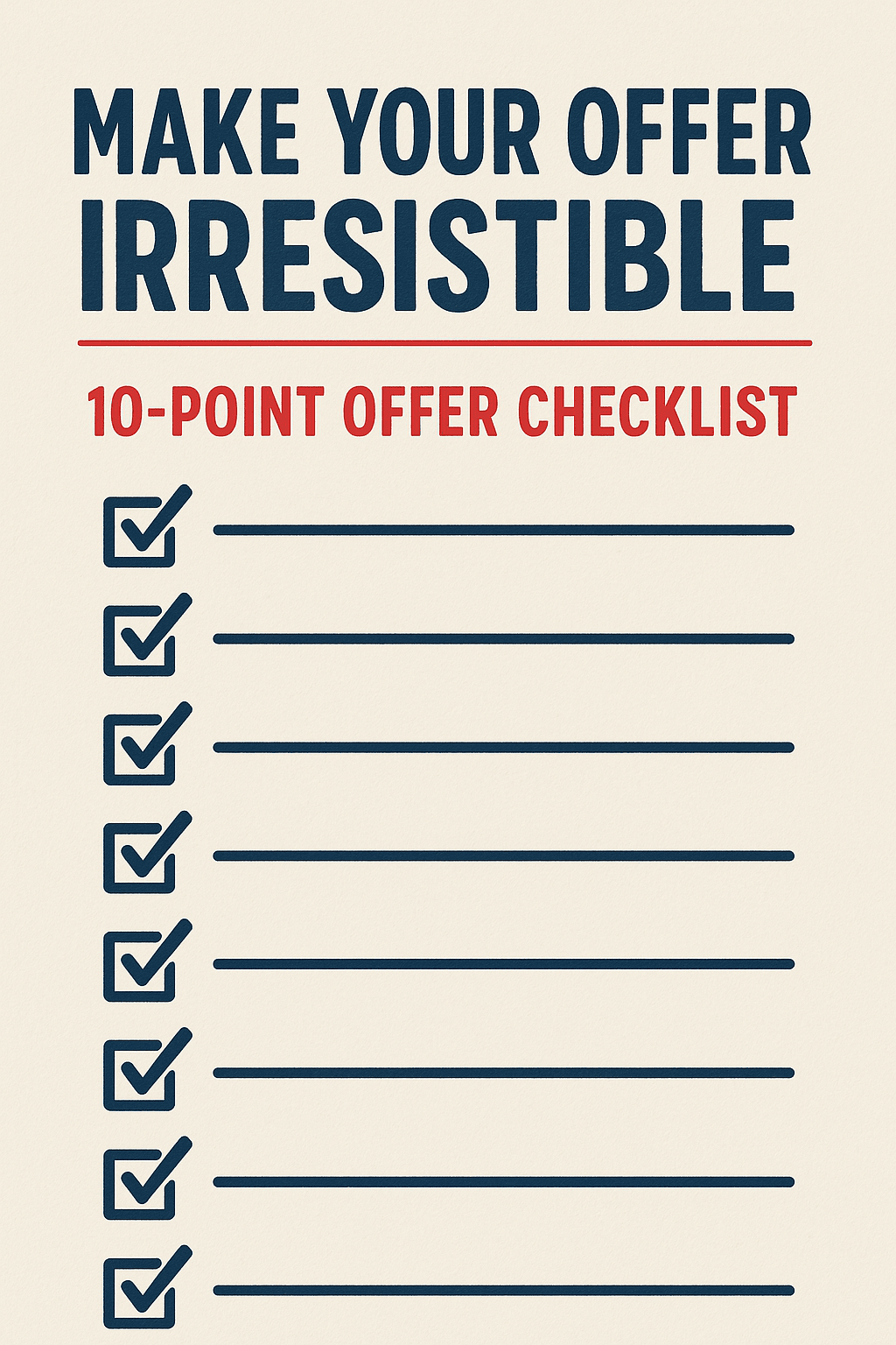 This checklist will walk you through the exact steps to craft an offer so compelling, your audience won’t even know how to say “no.”
